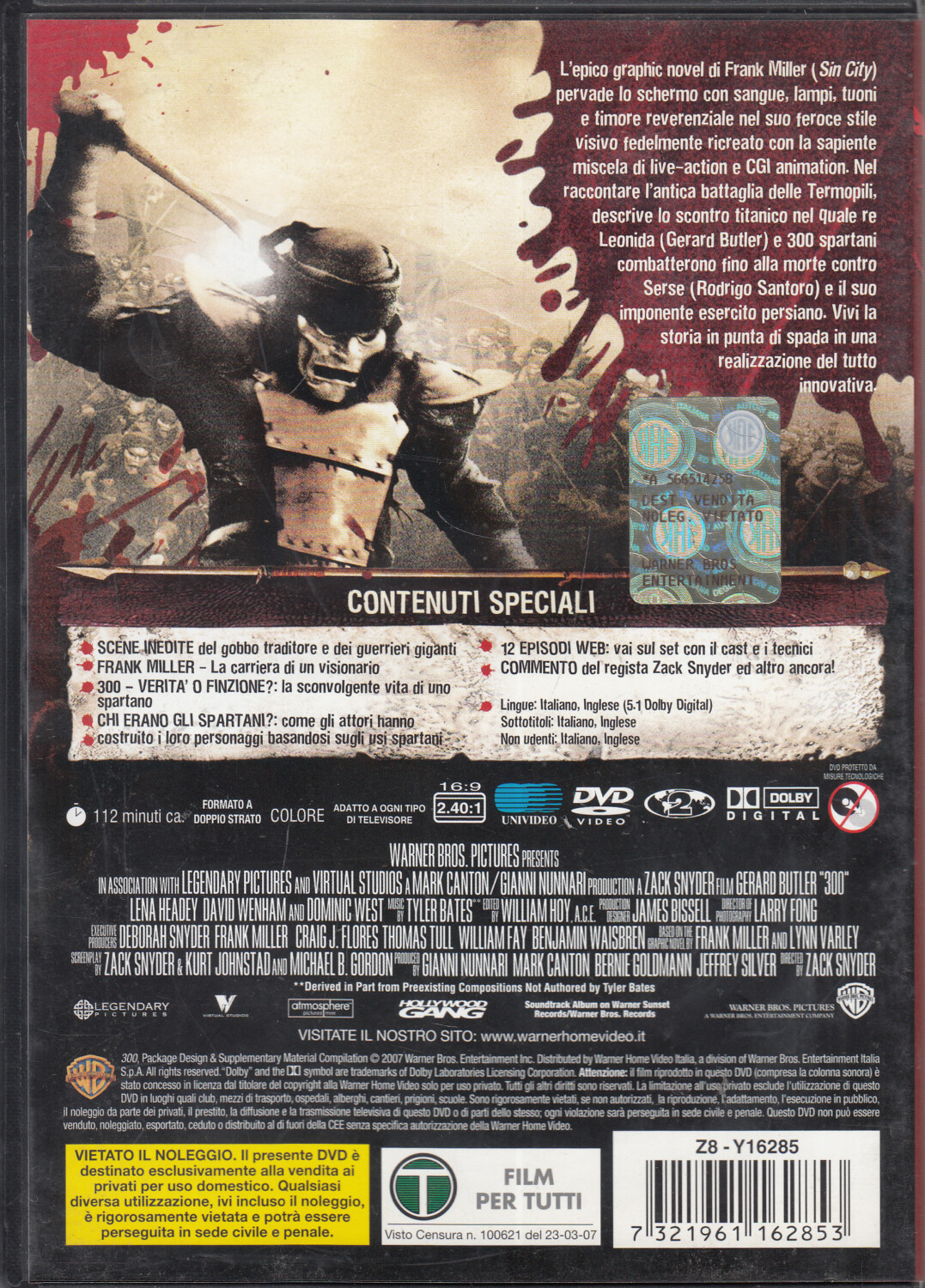 | Titolo: | 300 (Gerard Butler) Edizione Speciale (2 DVD) SENZA Cofanetto – DVD in Italiano |