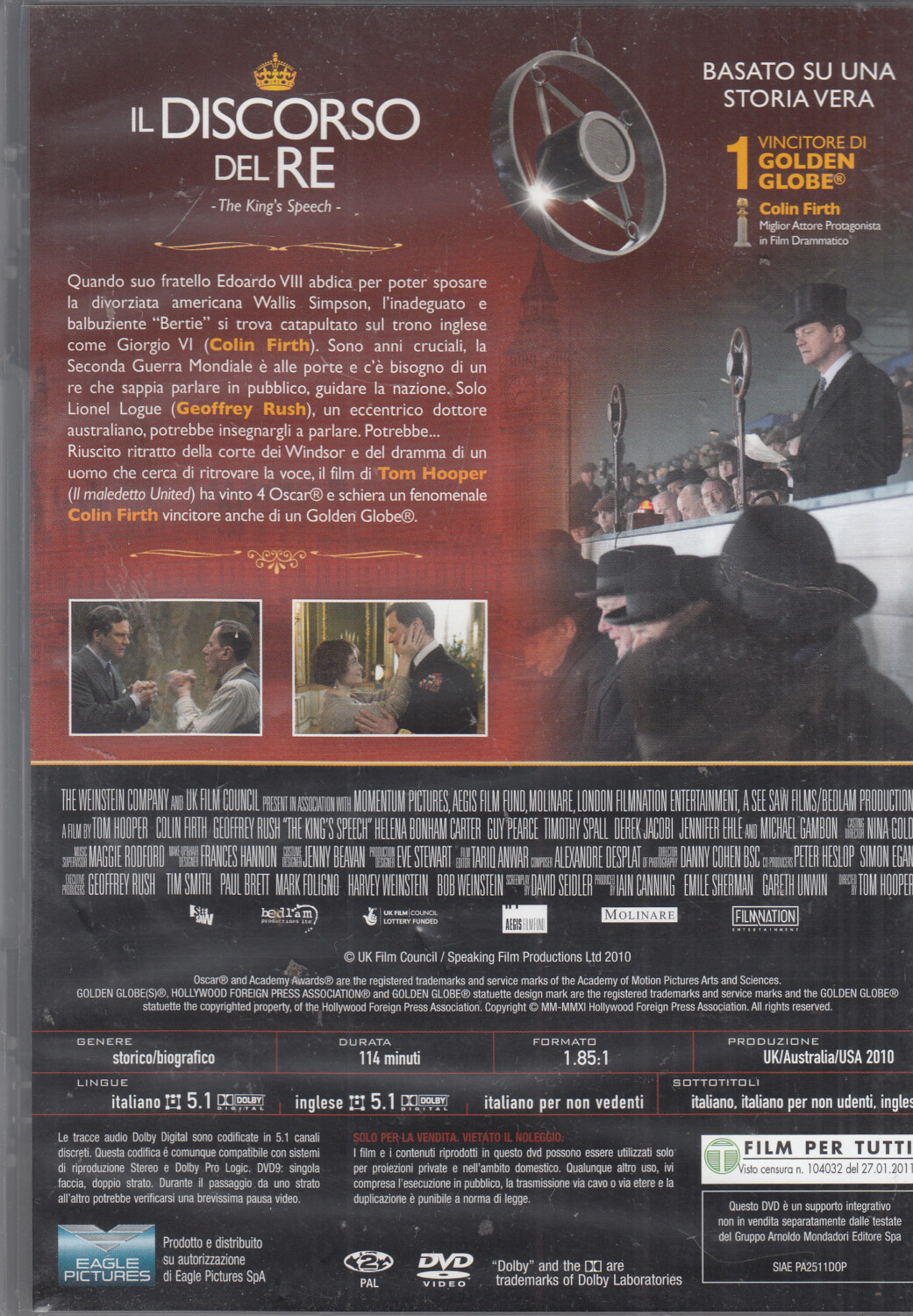 Il discorso del Re con Colin Firth. DVD in Italiano. Versione da edicola