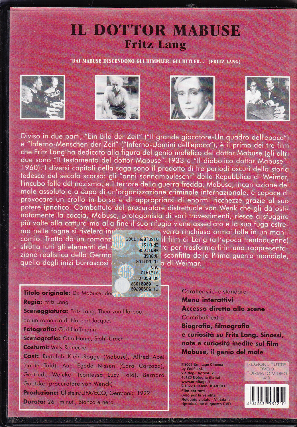 | Titolo: | Il Dottor Mabuse (Fritz Lang) (2 DVD) – DVD in Italiano |