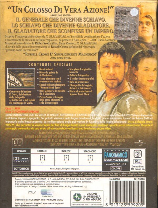 | Titolo: | Il Gladiatore -Collector’s Edition (2 DVD) con Cofanetto – DVD in Italiano |