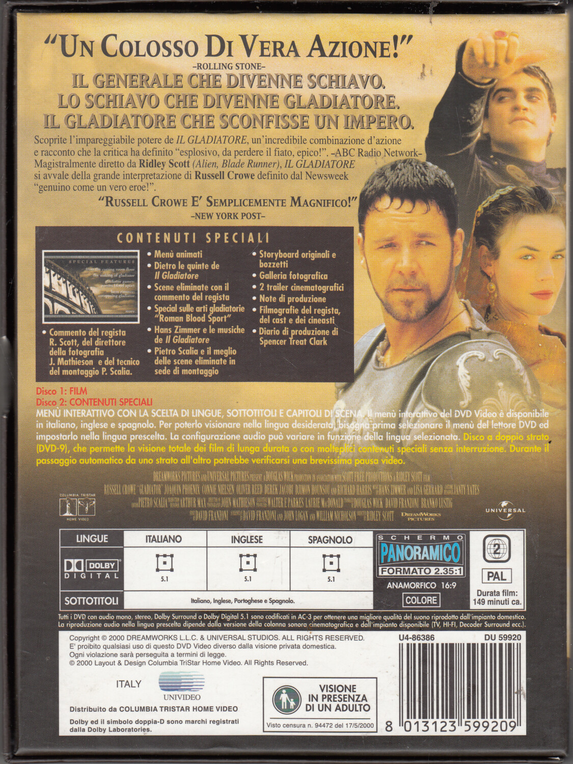 | Titolo: | Il Gladiatore di Ridley Scott con Russel Crowe. Collector’s Edition. DVD in Italiano |