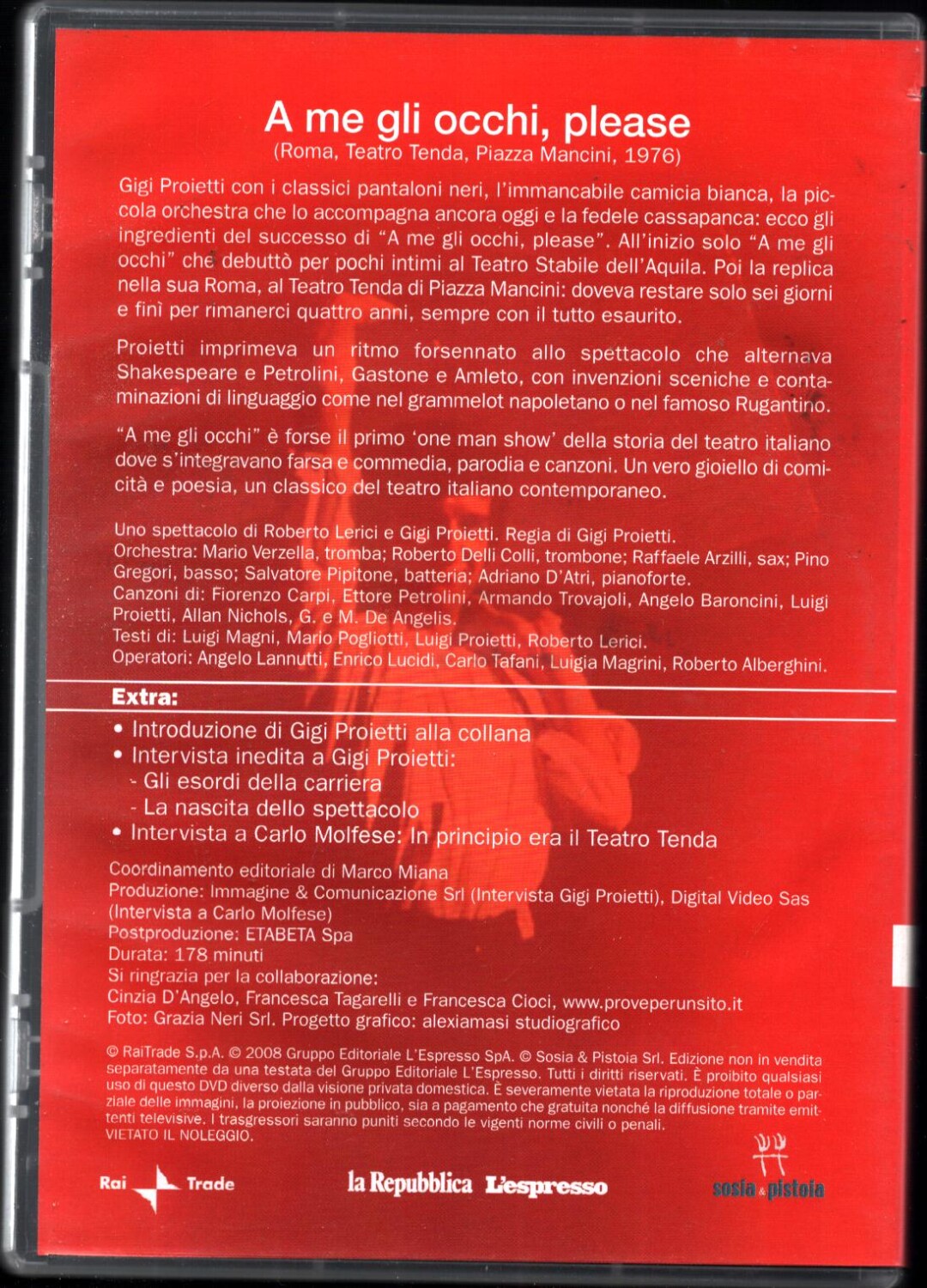 | Titolo: | A Me Gli Occhi Please. Il Teatro Di Gigi Proietti DVD in Italiano Versione da edicola |