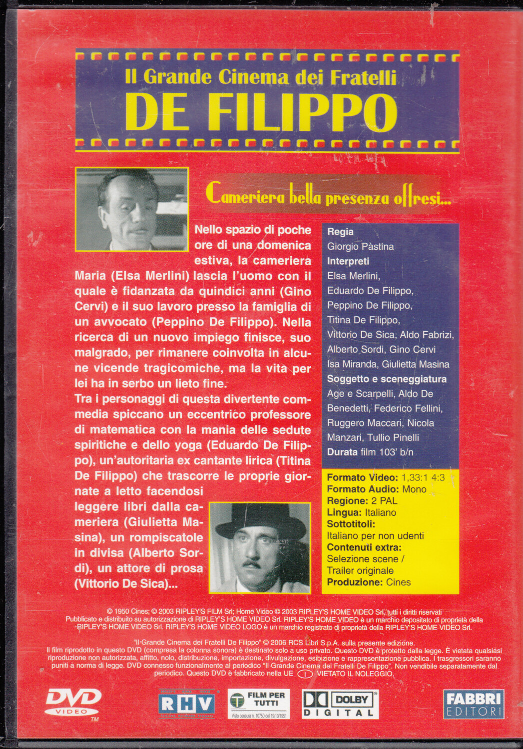 | Titolo: | Cameriera bella presenza offresi – DVD Il Grande Cinema dei Fratelli De Filippo – Versione da edicola – DVD in Italiano |