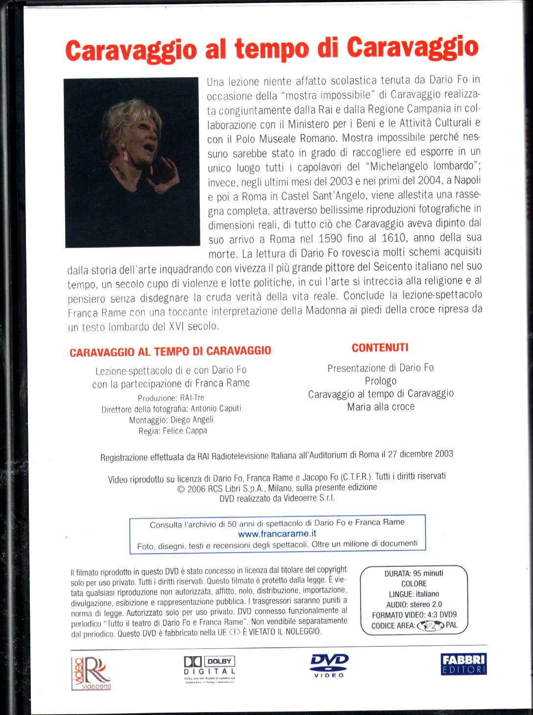 | Titolo: | Caravaggio al tempo di Caravaggio. Tutto il teatro Dario Fo e Franca Rame. DVD in italiano. Versione da edicola |