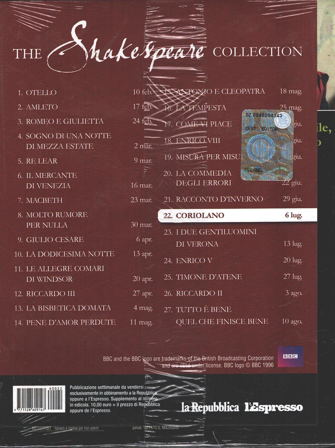 | Titolo: | Coriolano – DVD The Shakespeare Collection vol. 22 – Versione da Edicola – DVD in Italiano |