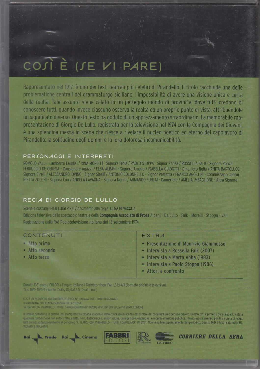 | Titolo: | Così è (Se vi pare) – A teatro con Pirandello Vol.5 – Versione da edicola. DVD in Italiano |