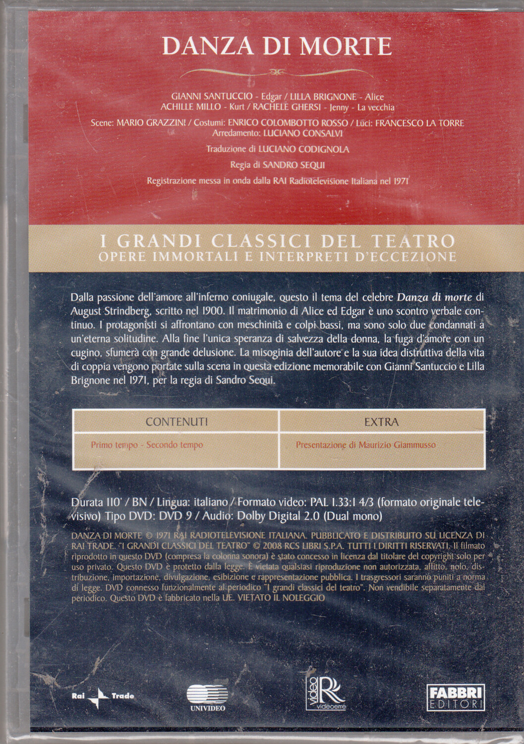 | Titolo: | Danza di Morte (August Strindberg) – DVD I Grandi Classici del Teatro – Versione da edicola – DVD in Italiano |