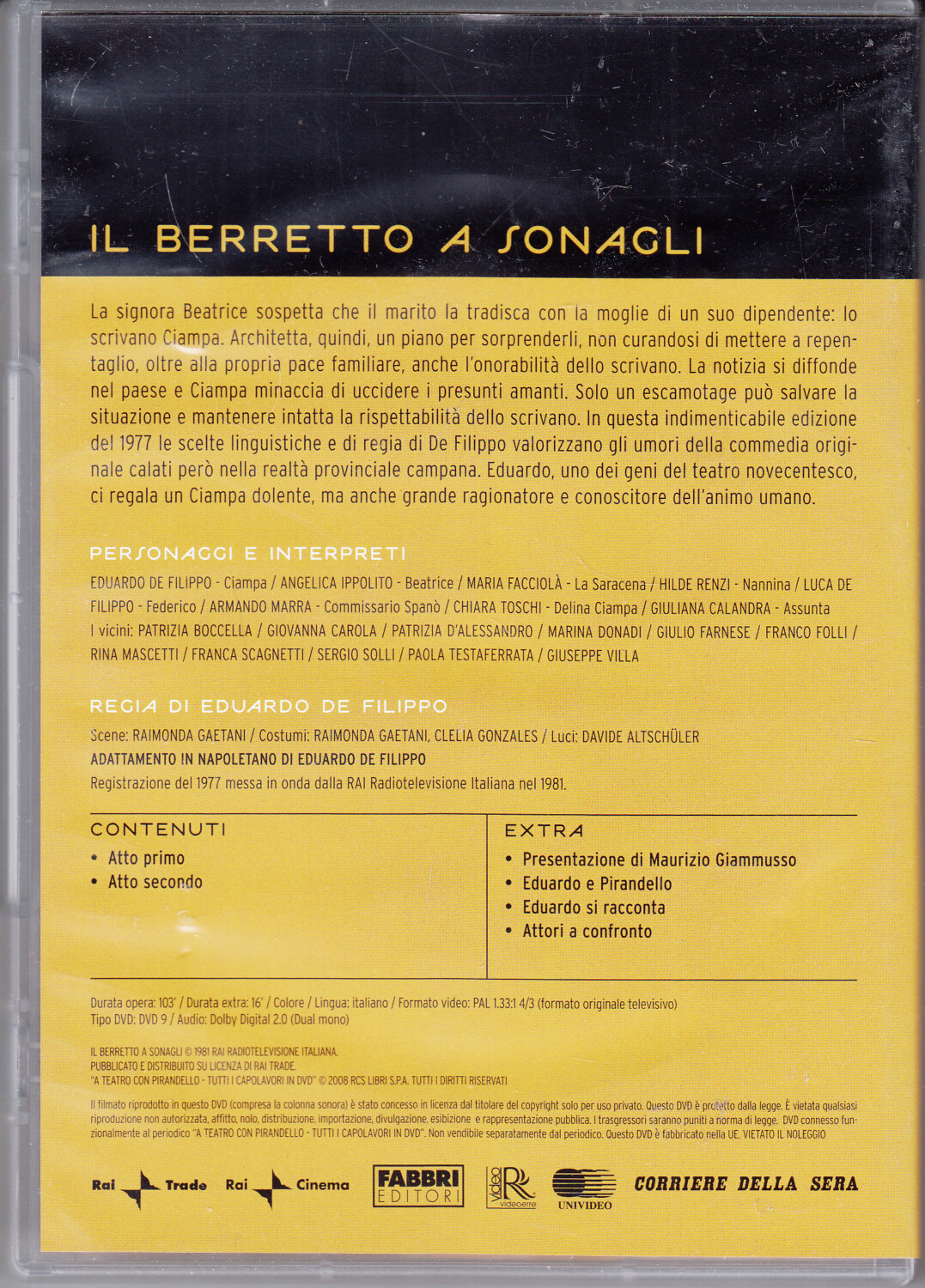 | Titolo: | Il Berretto a Sonagli. A Teatro con Pirandello vol. 2. DVD in Italiano. Versione da edicola |