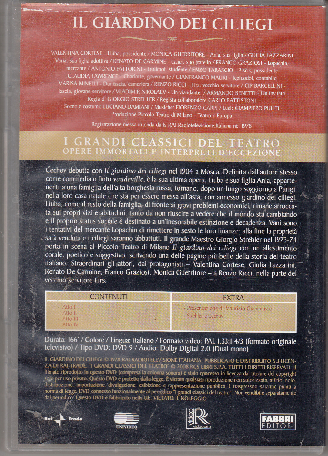 | Titolo: | Il giardino dei ciliegi di Anton Cechov. I Grandi Classici del Teatro. DVD in Italiano. Versione da edicola |