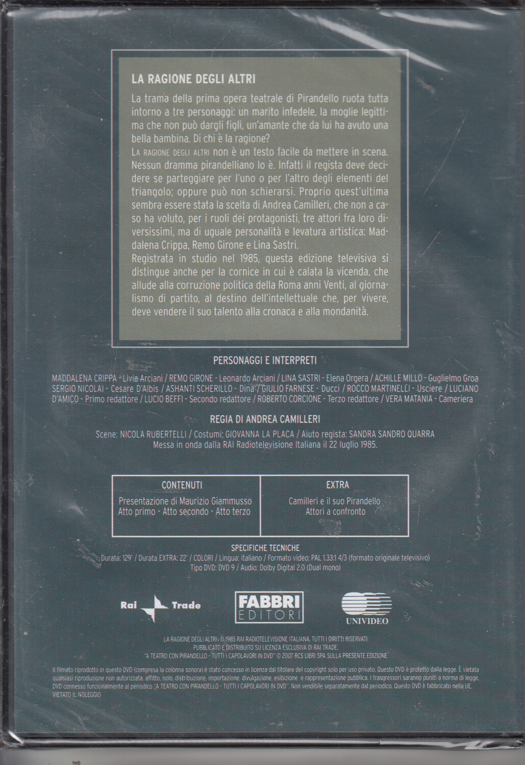 | Titolo: | La Ragione Degli Altri – A Teatro Con Pirandello – Versione da edicola. DVD in Italiano |