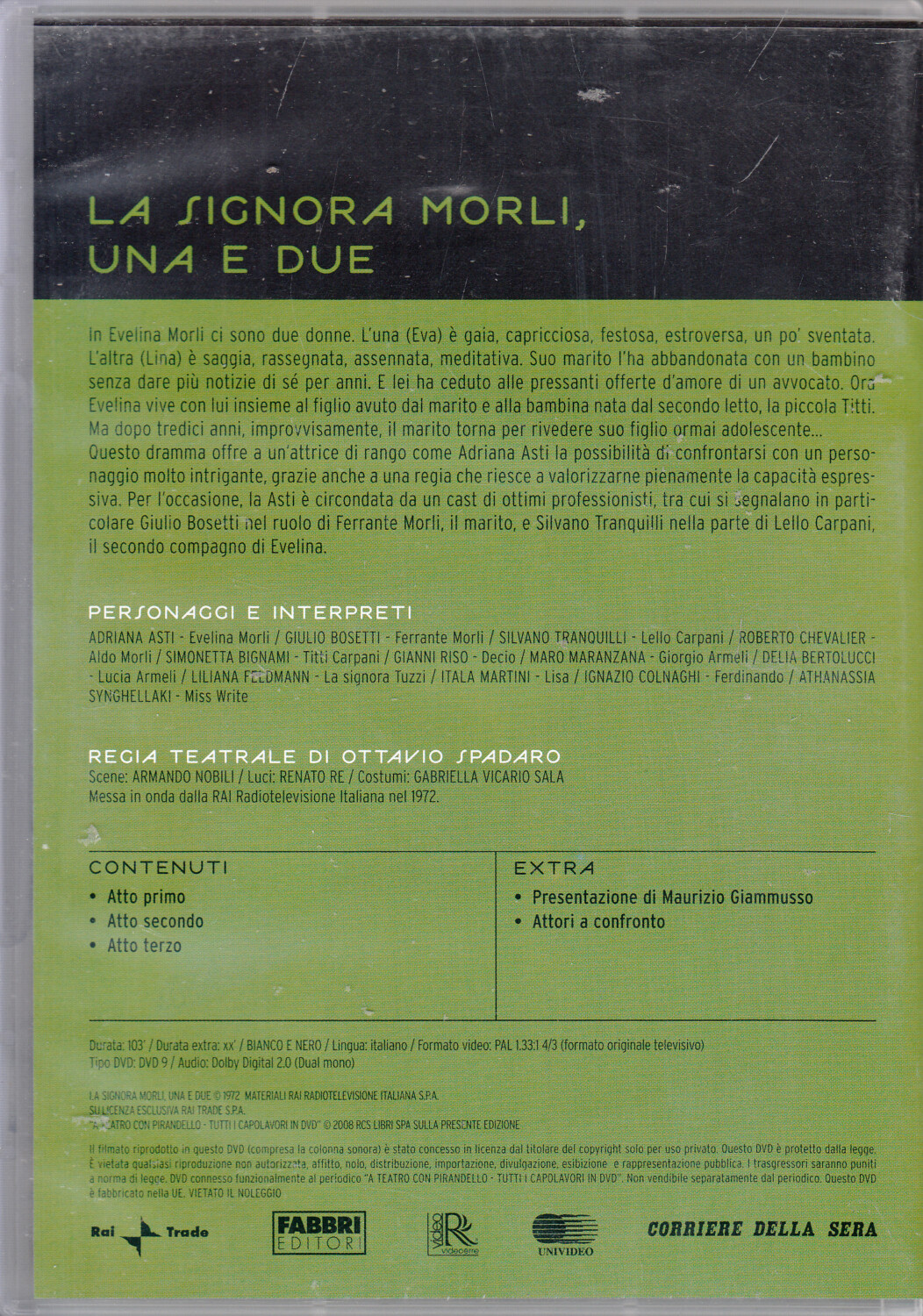 La signora Morli una e due – A teatro con Pirandello Vol.20 – Versione da edicola. DVD in Italiano