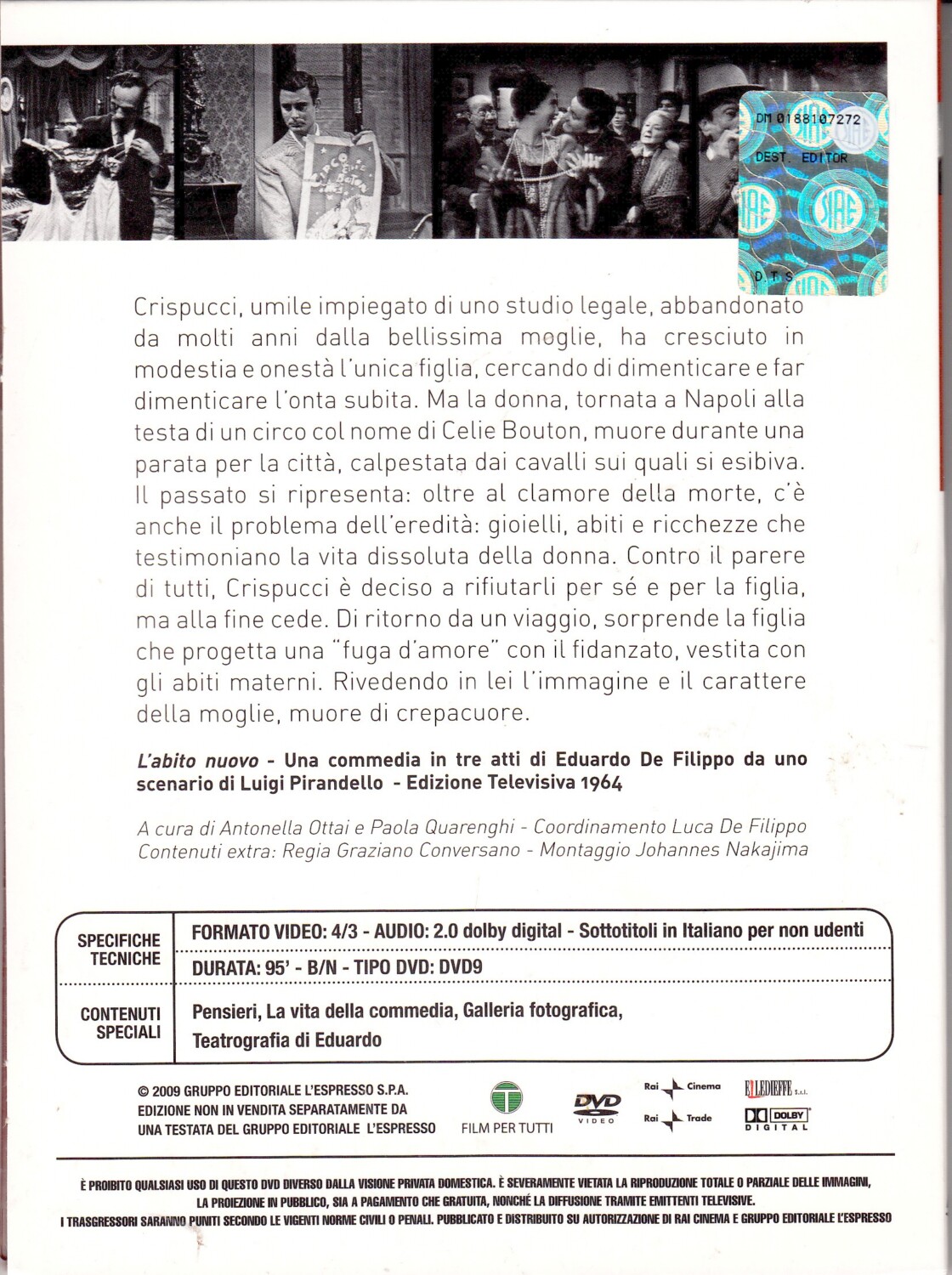 | Titolo: | L’abito nuovo. Le Commedie di Eduardo De Filippo vol. 19. DVD in Italiano. Versione da edicola |