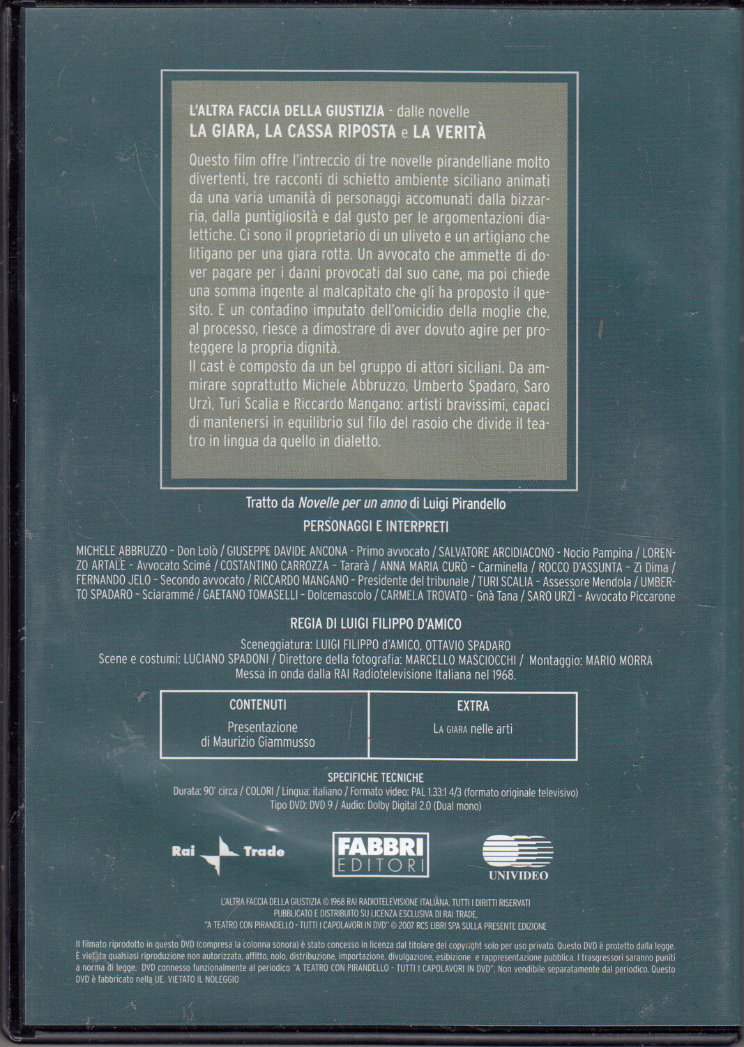 | Titolo: | L’altra faccia della giustizia dalle novelle La giara, la cassa riposta e la verita’. A Teatro Con Pirandello. DVD in Italiano. Versione da edicola |