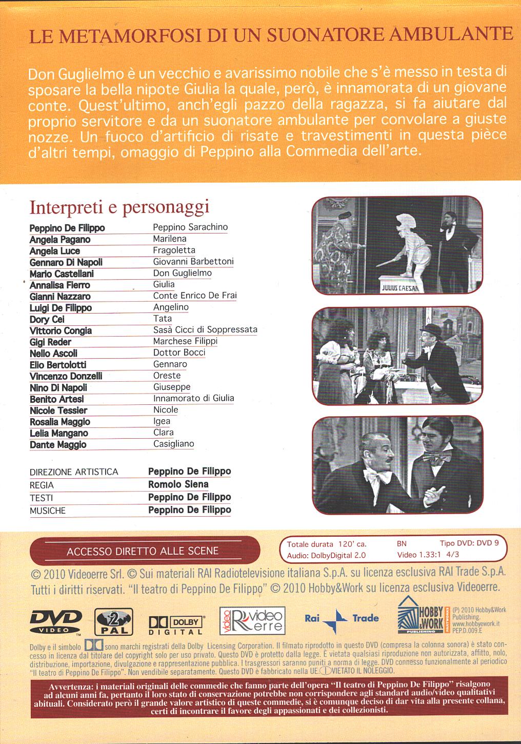 | Titolo: | Le metamorfosi di un suonatore ambulante. Il teatro di Peppino De Filippo. Versione da edicola. DVD in Italiano |