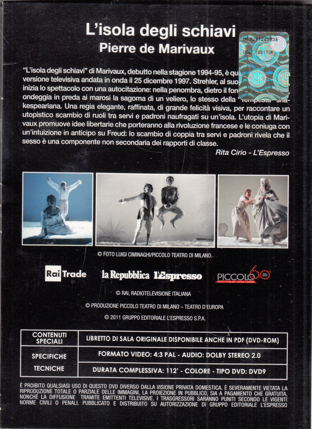 | Titolo: | L’isola degli schiavi – Pierre de Marivaux – Il grande teatro di Giorgio Strehler DVD Vol. n. 3 |