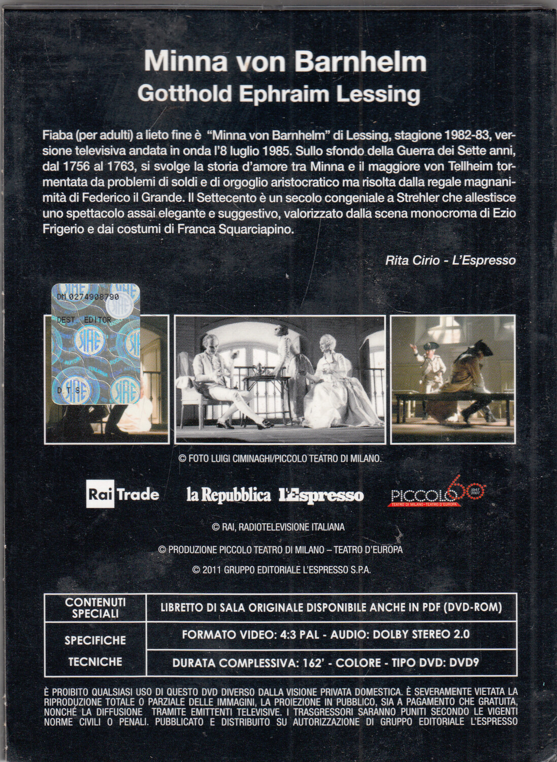 Minna Von Barnhelm – Gotthold Ephraim Lessing – Il grande teatro di Giorgio Strehler DVD Vol. n. 6