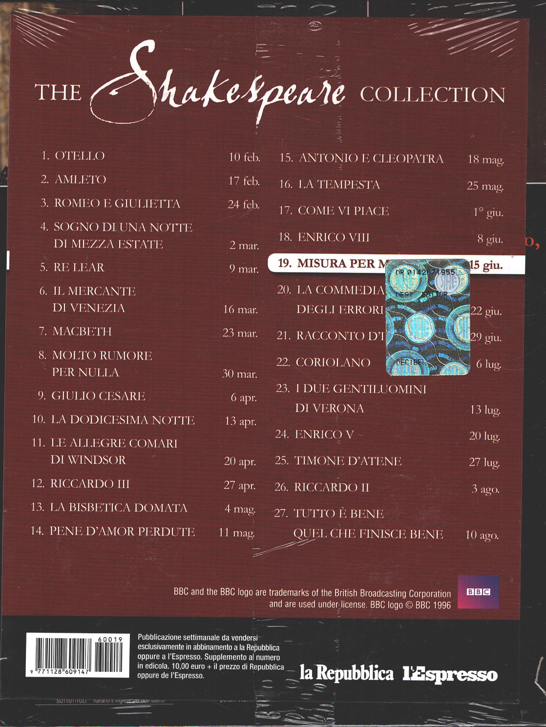 | Titolo: | Misura per misura – DVD The Shakespeare Collection vol. 19 – Versione da edicola – DVD in Italiano |