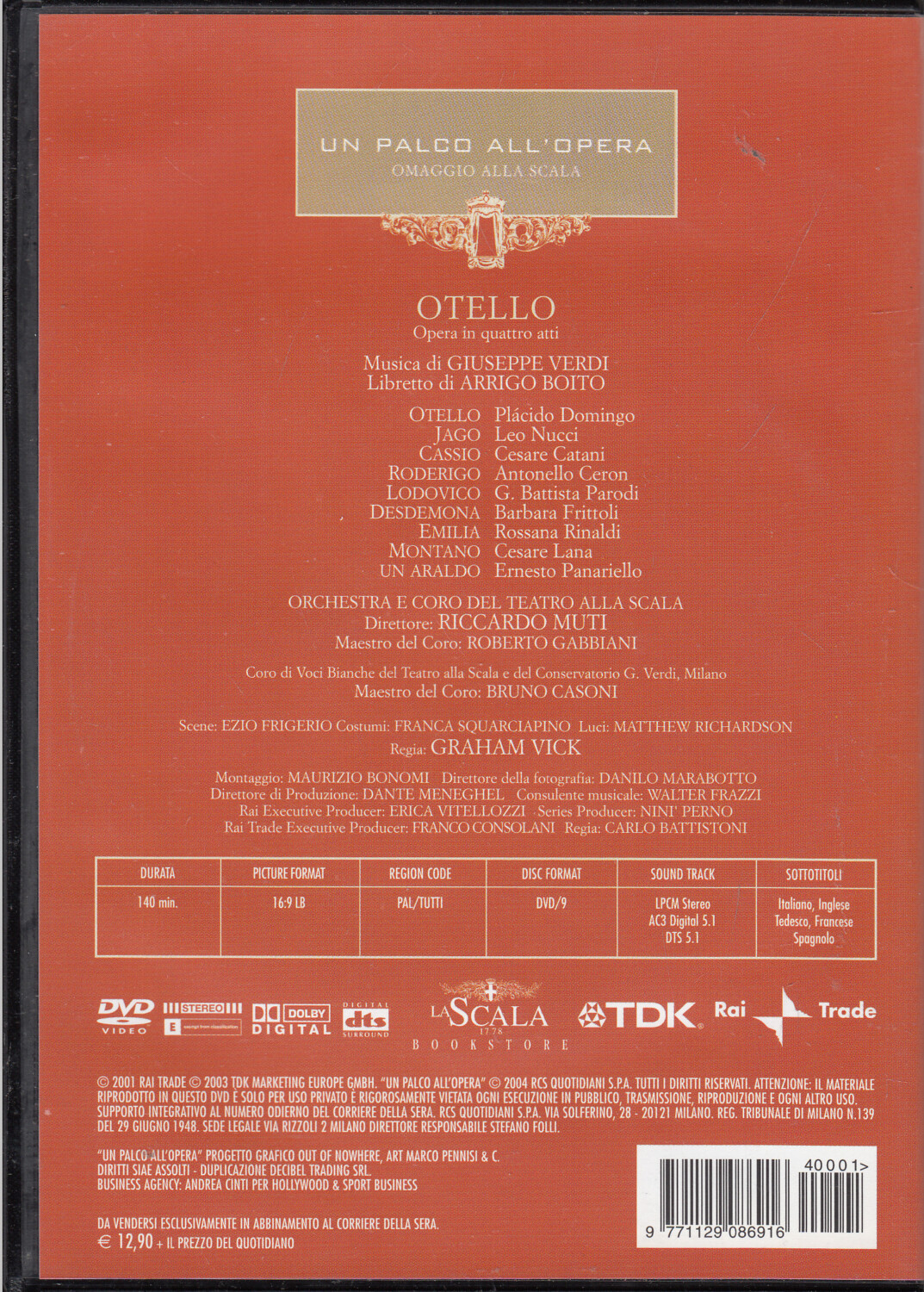Otello – Un Palco All’Opera Vol.1 (Giuseppe Verdi) – Versione da edicola. DVD in Italiano