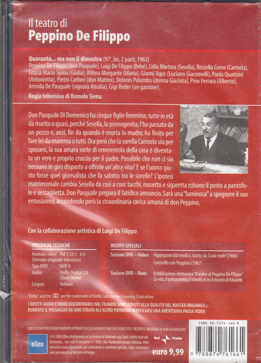 Quaranta… ma non li dimostra. Il teatro di Peppino De Filippo. DVD in Italiano