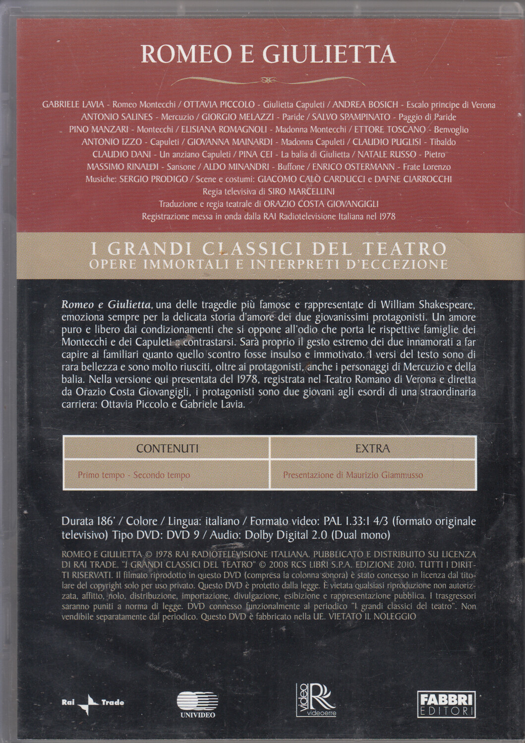 | Titolo: | Romeo e Giulietta (William Shakespeare) – DVD I Grandi Classici del Teatro – Versione da edicola – DVD in Italiano |