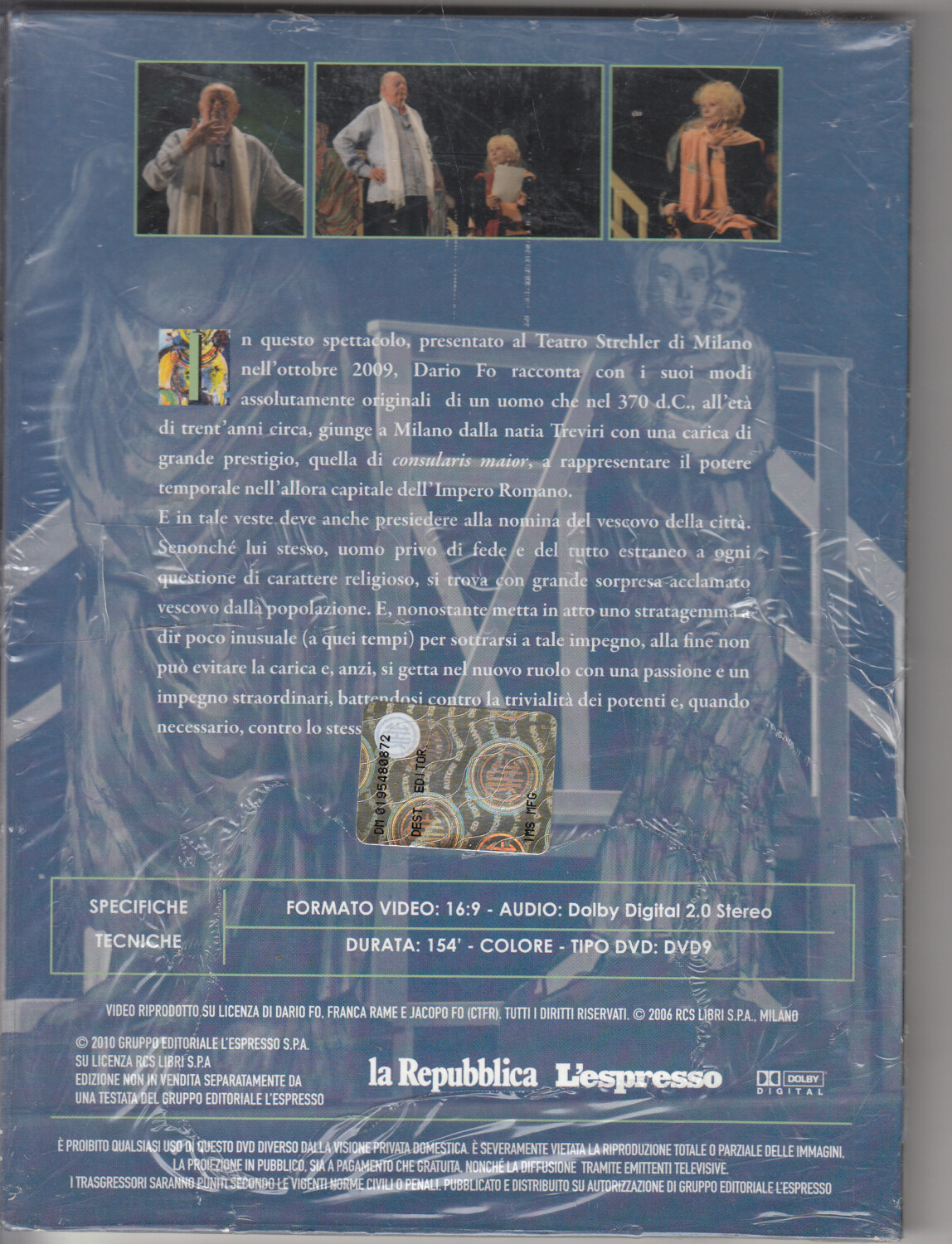 | Titolo: | Sant’Ambrogio e l’invenzione di Milano – Dario Fo e Franca Rame – Versione da edicola. DVD in Italiano |
