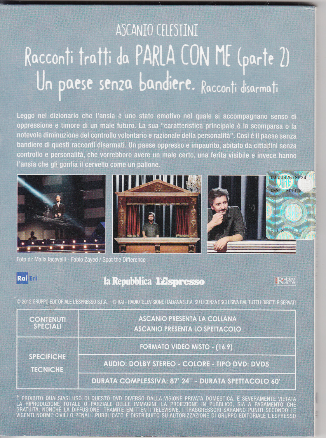 Un paese senza Bandiere – (Racconti tratti da parla con me Vol.10 Parte 2) Ascanio Celestini – Versione da edicola. DVD in Italiano