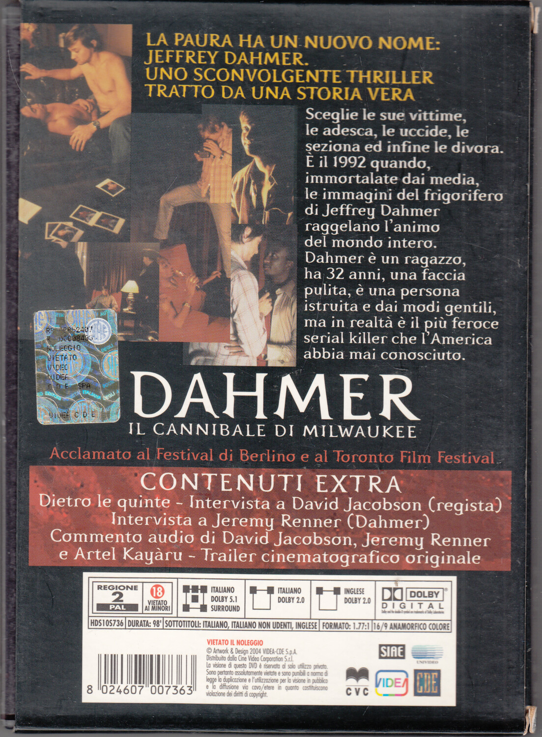 | Titolo: | Dahmer Il Cannibale Di Milwaukee David Jacobson. DVD in Italiano Versione Noleggio |