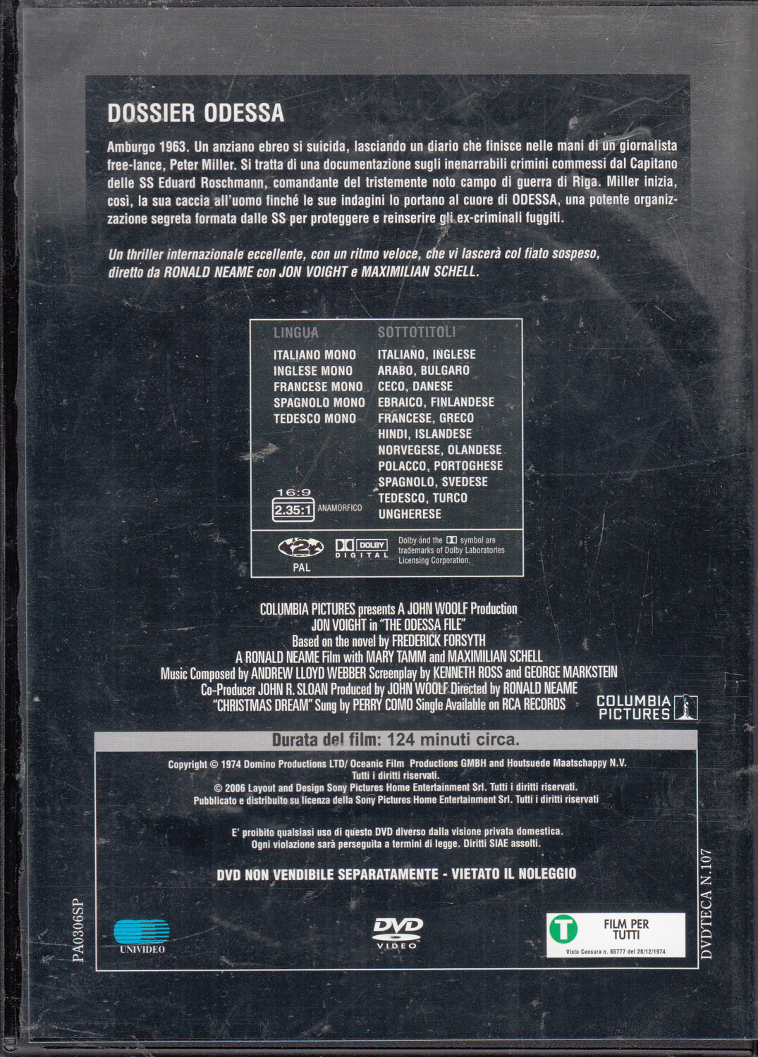 | Titolo: | Dossier Odessa (Spy Story) – Versione da edicola. DVD in Italiano |