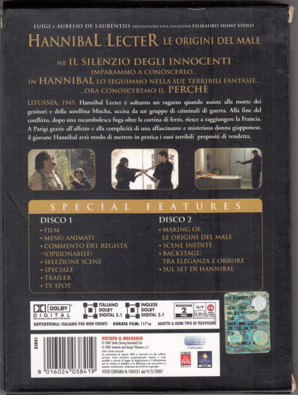 | Titolo: | Hannibal Lecter – Le Origini Del Male (Special Edition) (2 Dvd) DVD in Italiano |