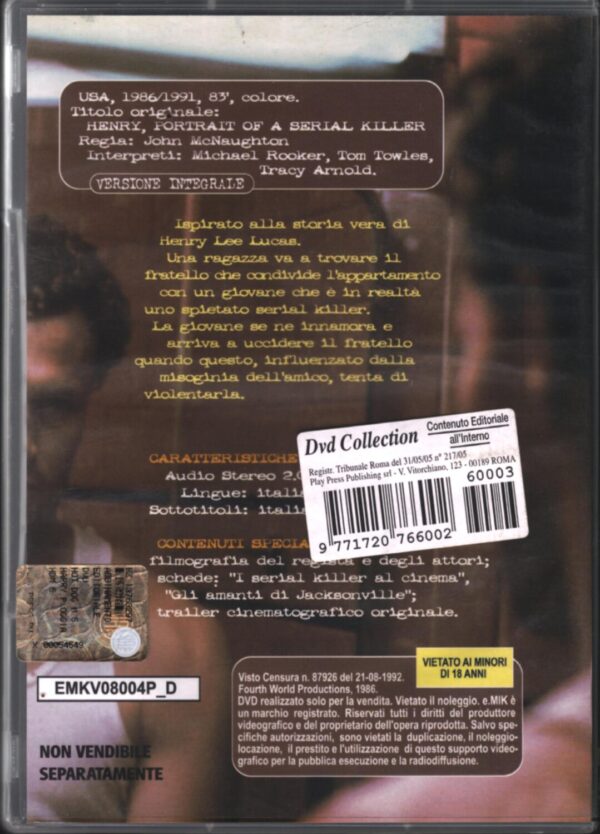 | Titolo: | Henry. Pioggia di sangue un film con Michael Rooker. DVD in Italiano. Versione da edicola |