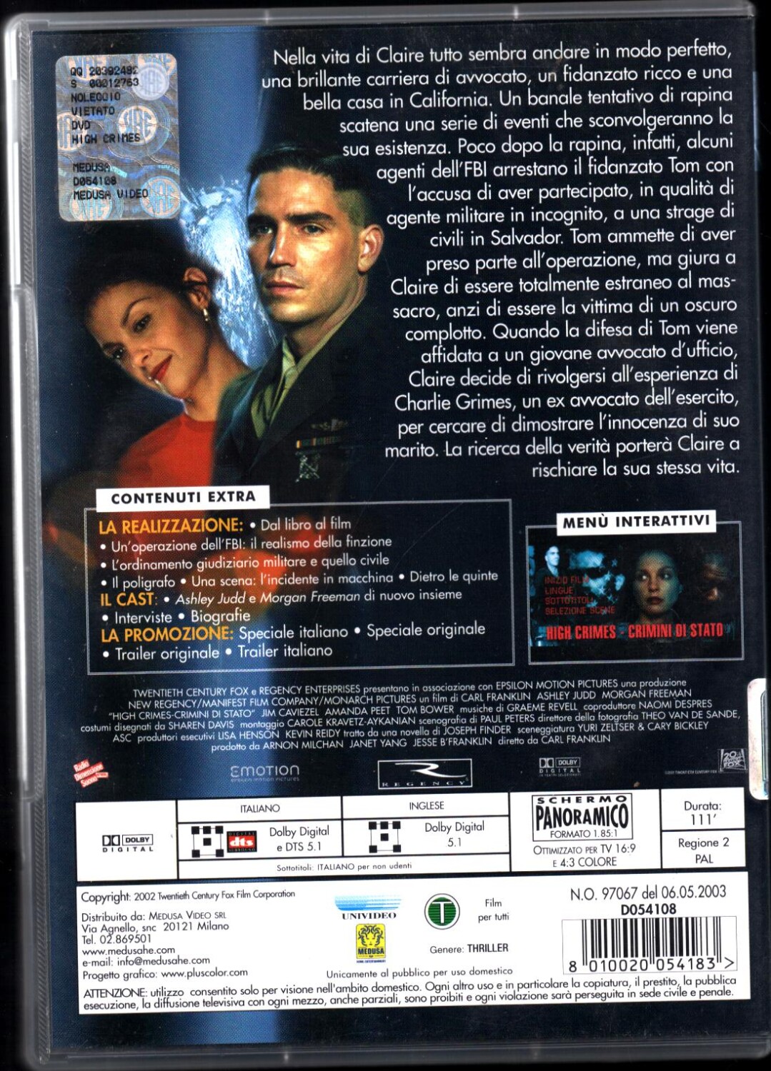 High crimes – crimini di stato Edizione Speciale con 2 DVD in Italiano Morgan Freeman