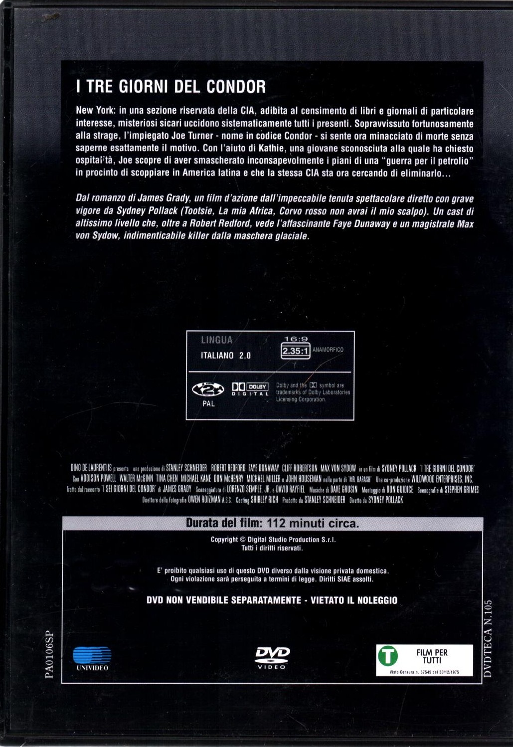| Titolo: | I tre giorni del Condor (Robert Redford) Versione da edicola – DVD in Italiano |