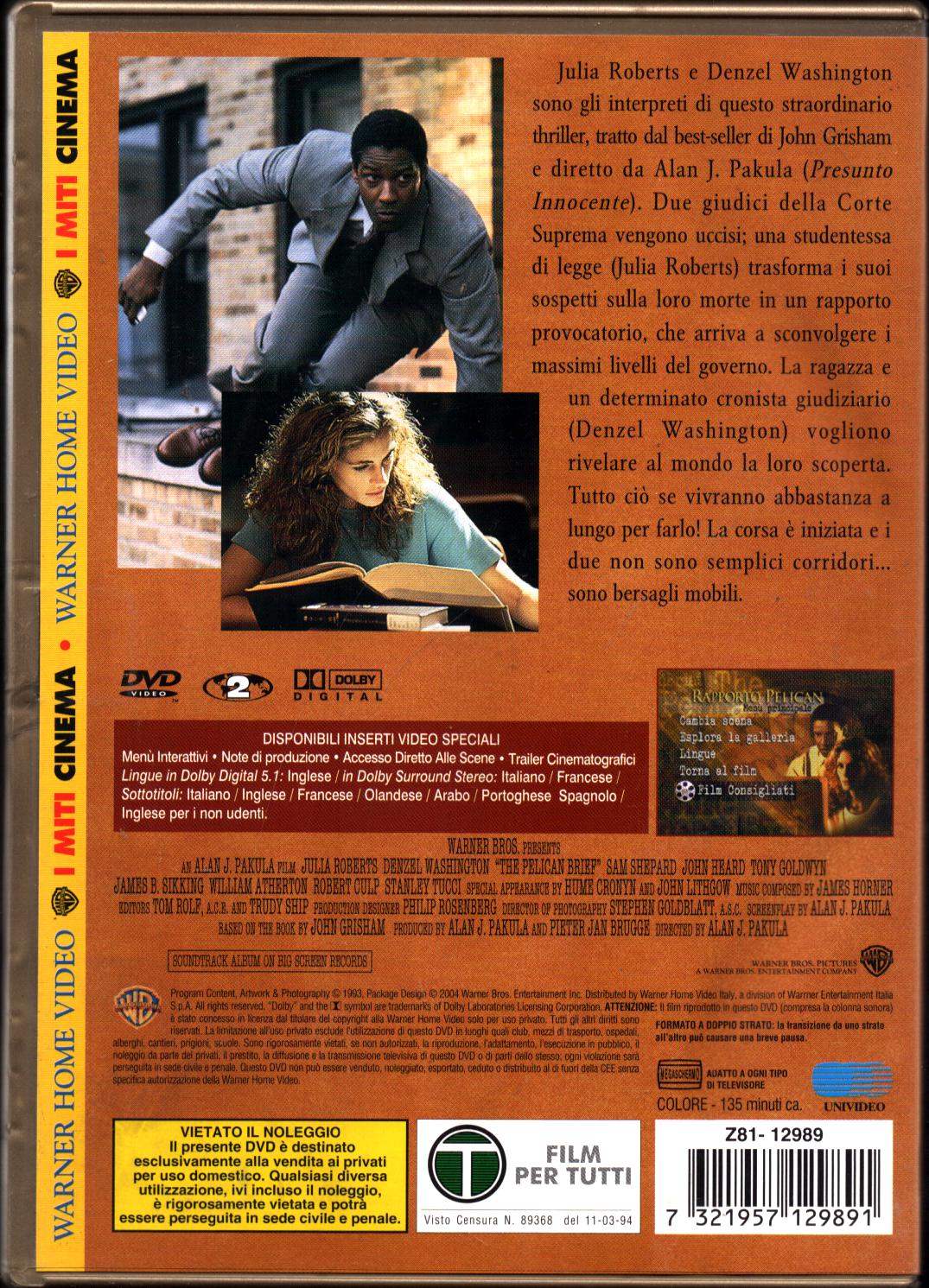 | Titolo: | Il rapporto Pelican DVD in Italiano Julia Roberts I Miti Cinema |