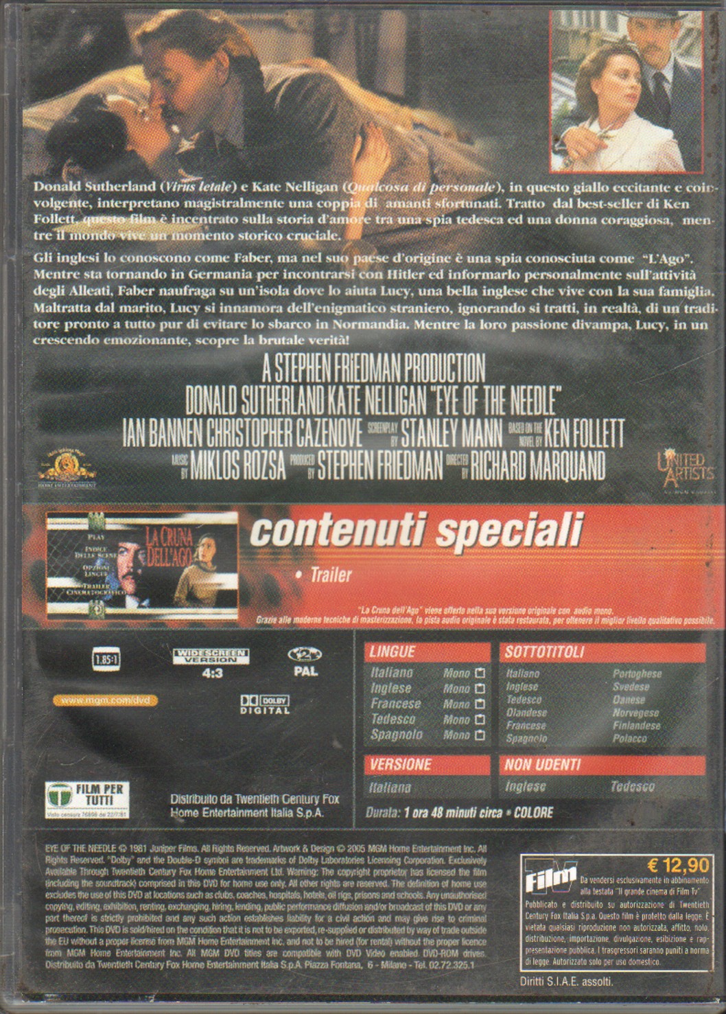 | Titolo: | La cruna dell’ago DVD in italiano Versione da edicola |