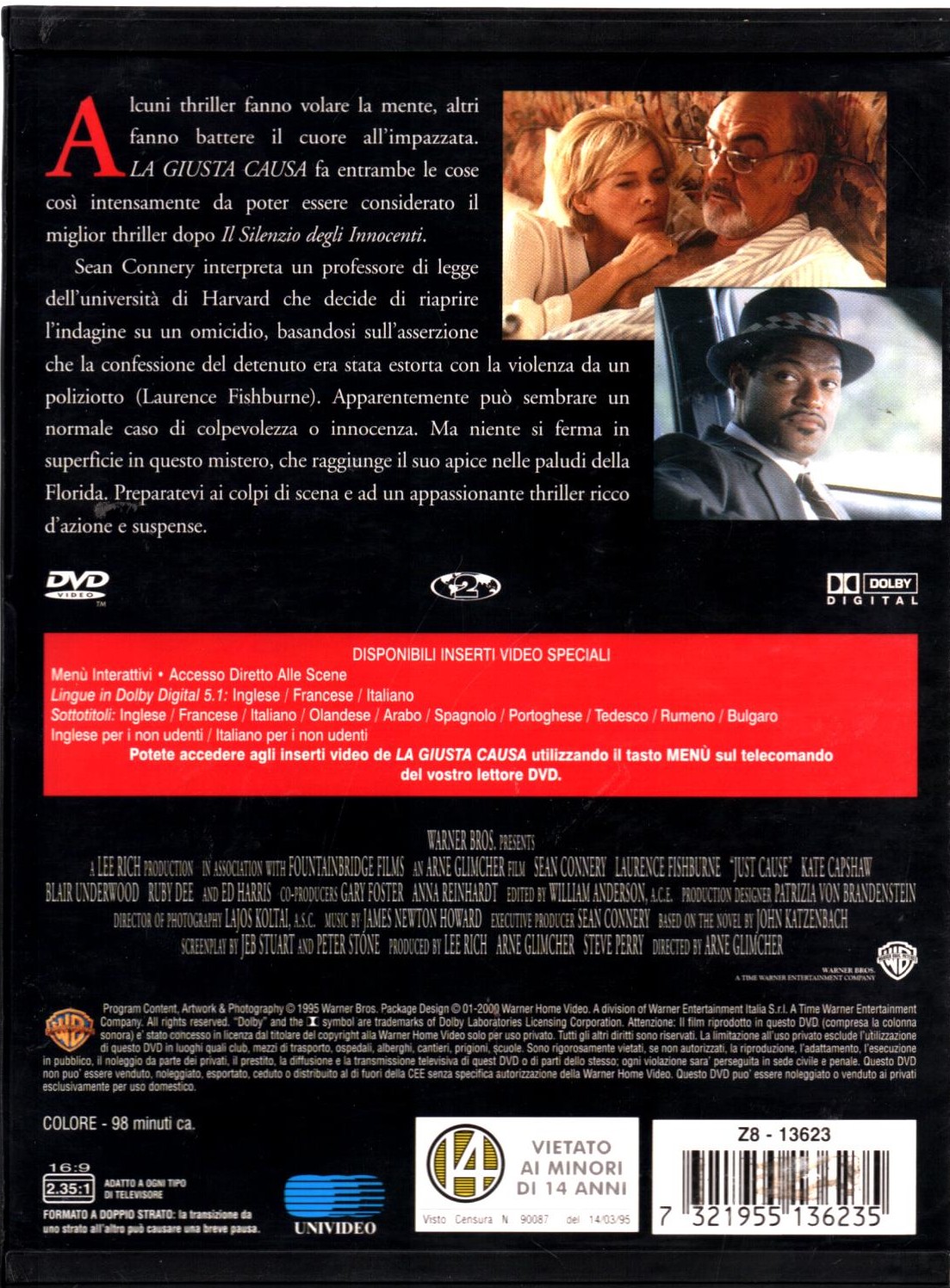La Giusta Causa DVD in Italiano Sean Connery Versione Noleggio