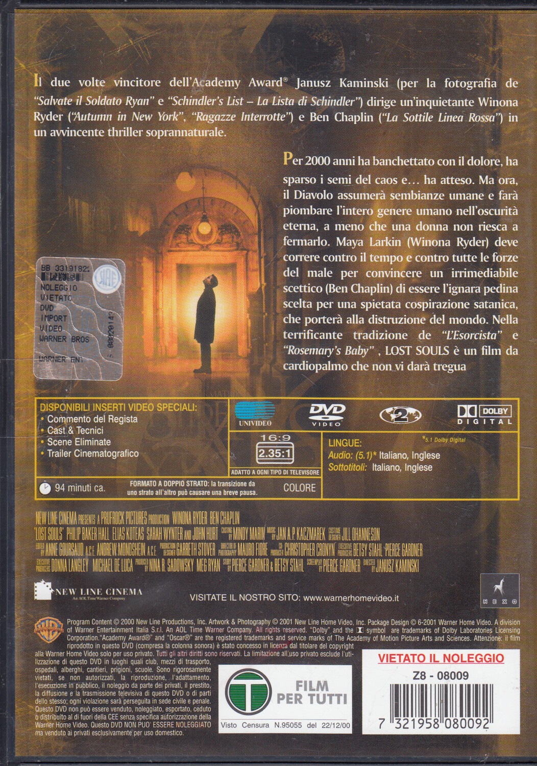 Lost souls. La profezia con Winona Ryder. DVD in Italiano