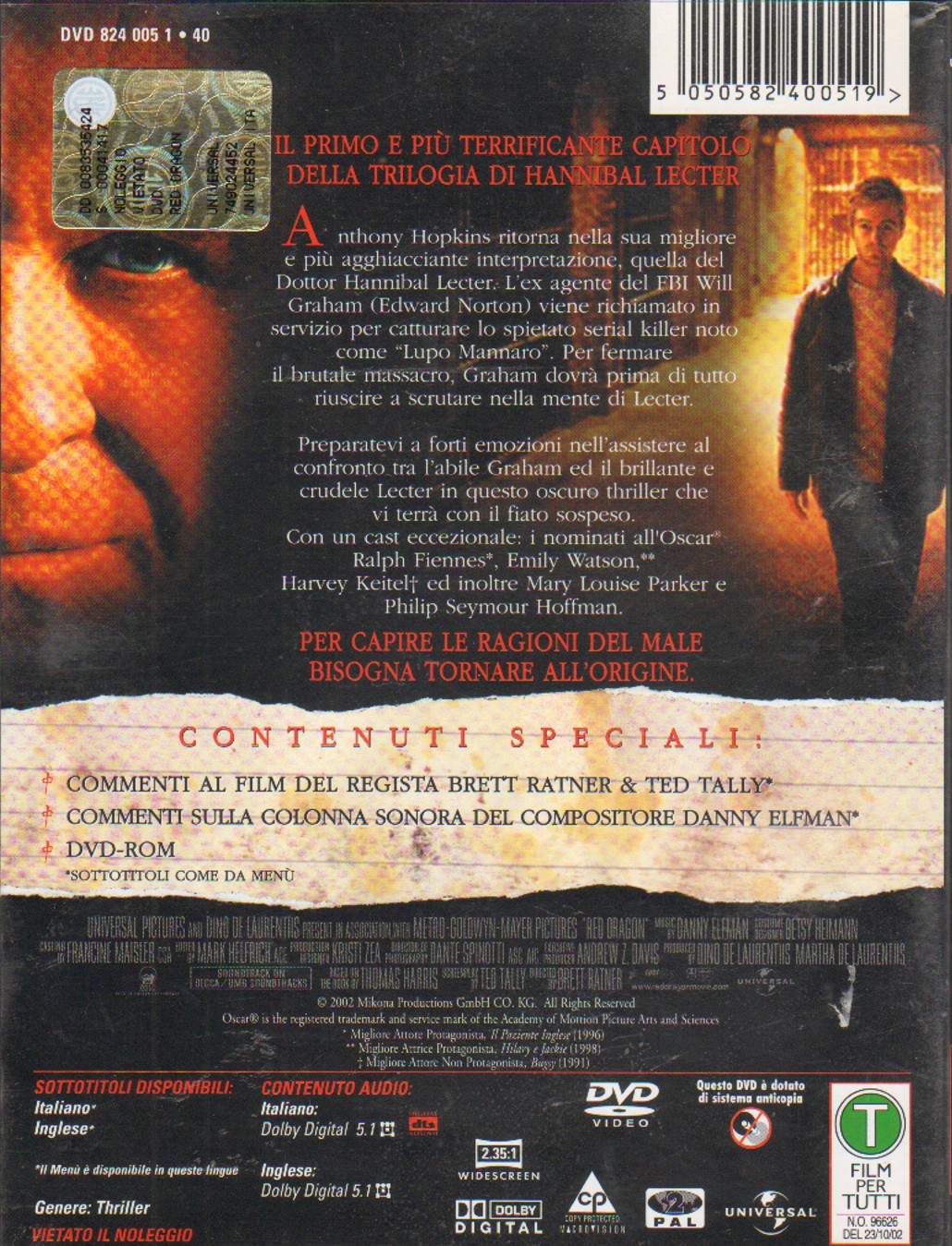 | Titolo: | Red dragon DVD in Italiano ed. |