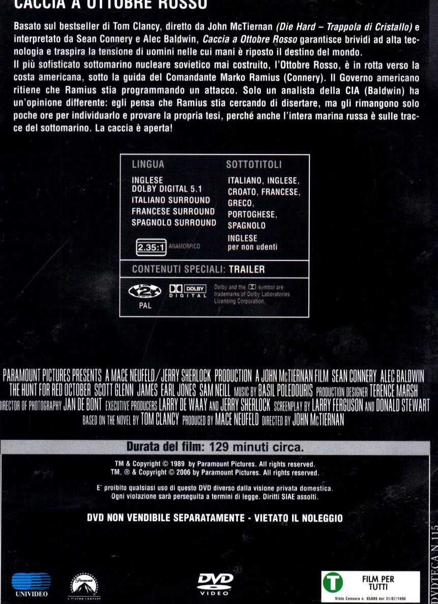 Spy Story. Caccia a Ottobre Rosso DVD in Italiano Sean CONNERY Versione da edicola