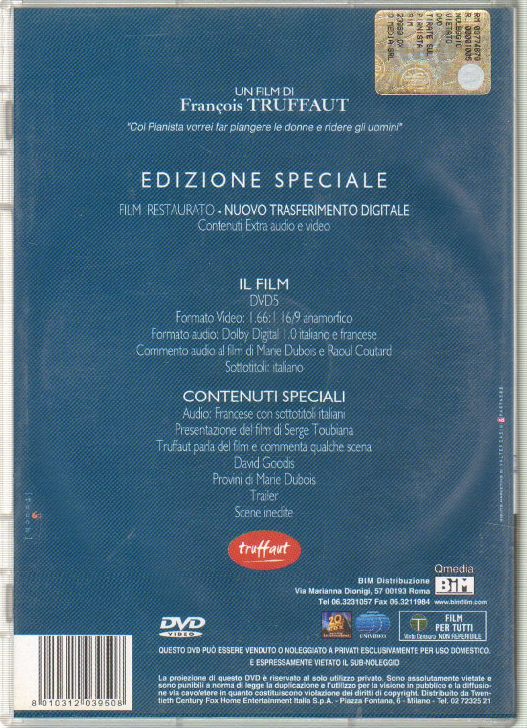Tirate Sul Pianista DVD in italiano di Francois Truffaut