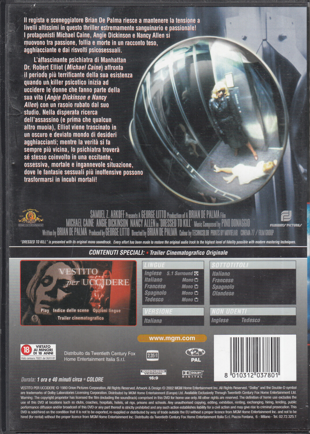 | Titolo: | Vestito per uccidere DVD in Italiano. Michael Caine |
