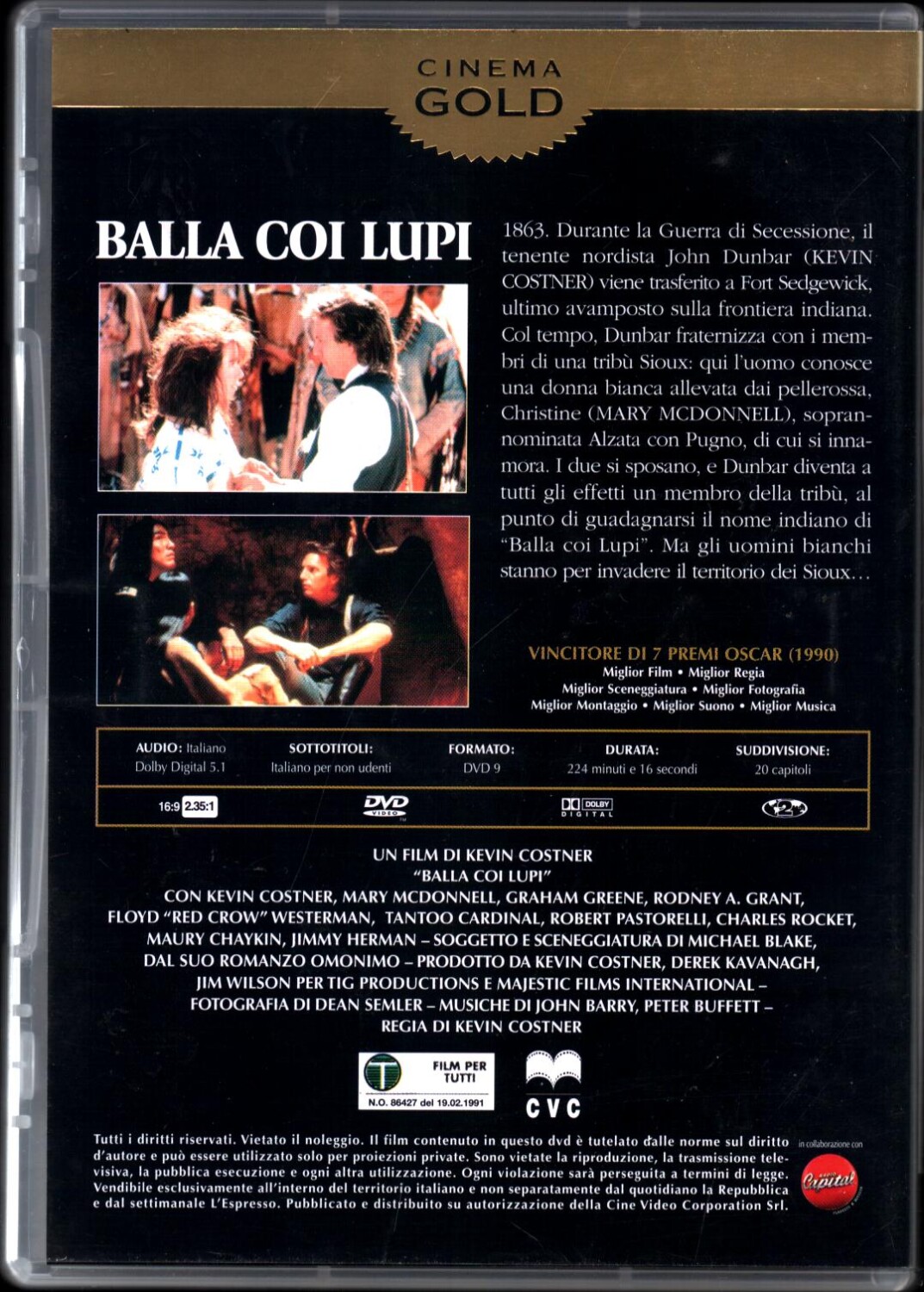 Balla coi Lupi (Kevin Costner) – DVD Cinema Gold (vol. 2) Versione da edicola – DVD in Italiano