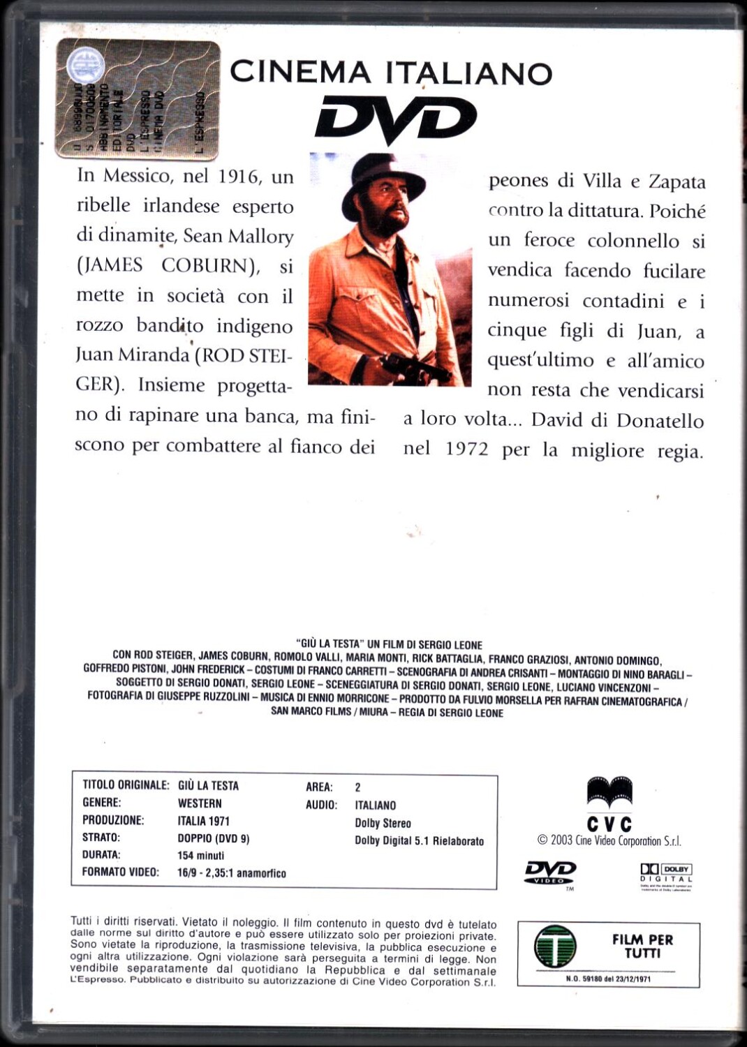 | Titolo: | Giu’ La Testa Sergio Leone DVD in Italiano Versione da edicola |