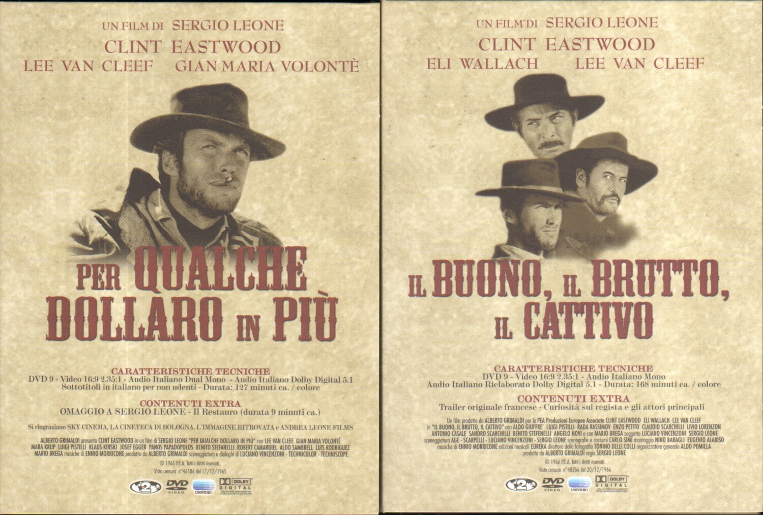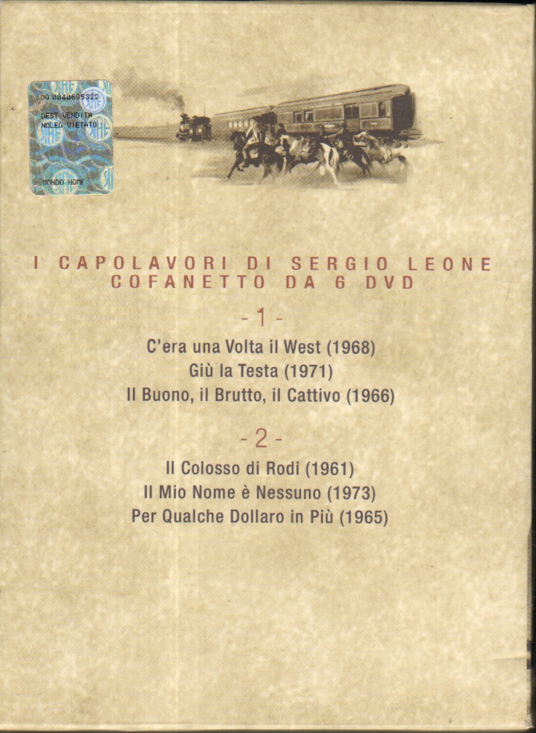 | Descrizione: | I film inclusi sono: C’era una volta il West – Già la testa – Il Buono il Brutto e il Cattivo – Il Colosso di Rodi – Il mio nome è Nessuno – Per qualche dollaro in più |