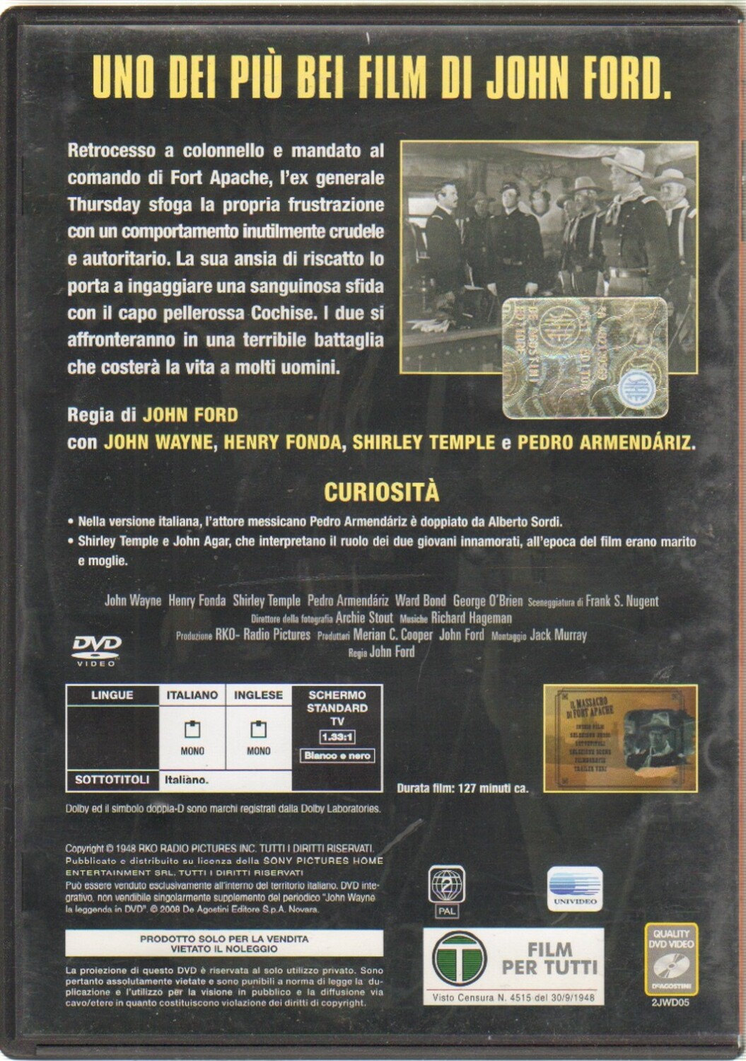 | Titolo: | il Massacro Di Fort Apache. John Wayne – La Leggenda in dvd. DVD in Italiano. Editoriale |
