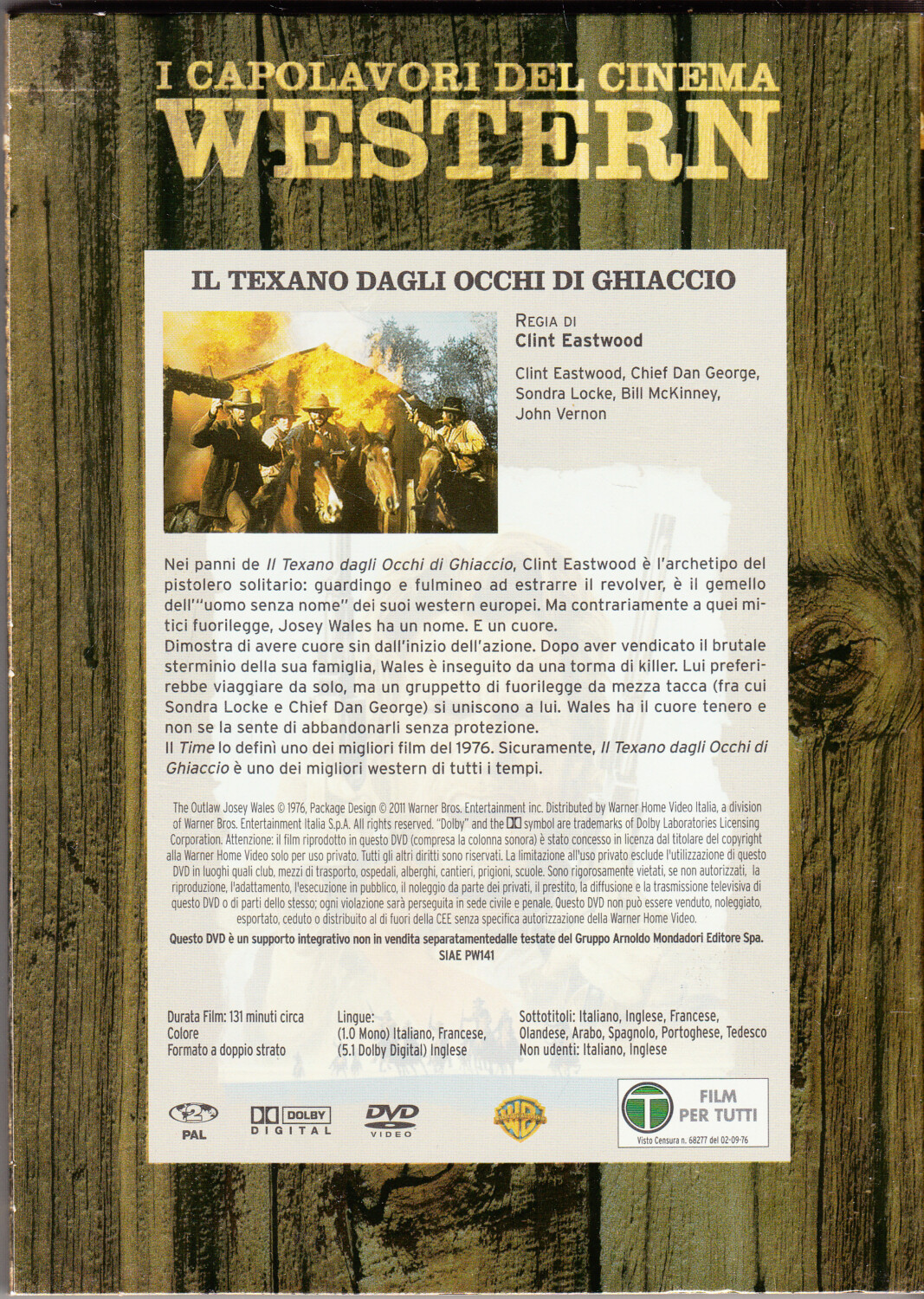 Il texano dagli occhi di ghiaccio Clint Eastwood DVD in Italiano I Capolavori del Cinema Western Versione da edicola