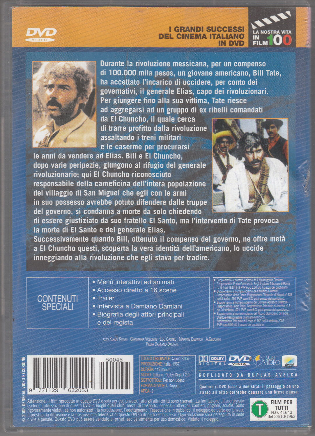 | Titolo: | Quien Sabe. I Grandi Successi del Cinema Italiano vol. 45. DVD in Italiano. Versione da edicola |