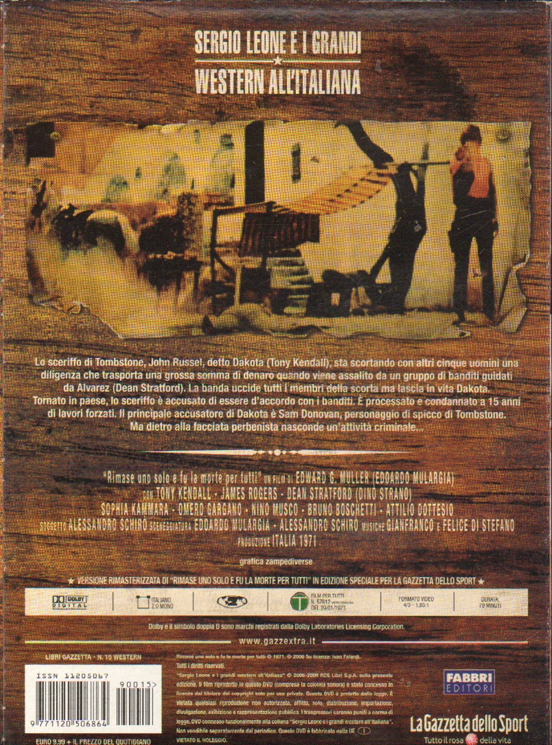 | Titolo: | Rimase uno solo e fu la morte per tutti – DVD Sergio Leone Grandi Western all’Italiana n. 15 – Versione da edicola – con Slipcase – DVD in italiano |