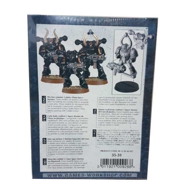 | La confezione contiene 3 Space Marine del Caos di plastica da assemblare e dipingere, ideali per incrementare i ranghi di unità già esistenti o per provare nuovi eserciti. Non necessitano di essere incollati, ma se preferite farlo ti consigliamo l’utilizzo della Colla per plastica e dei colori Citadel.