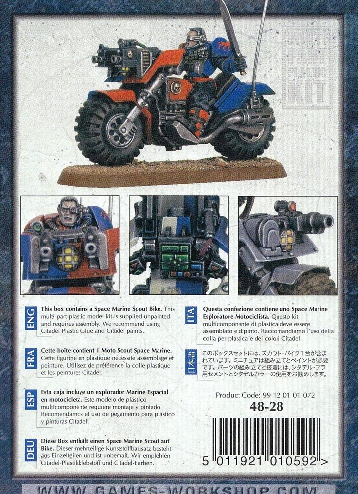 | Warhammer 40.000 40K: SPACE MARINE ESPLORATORE MOTOCICLISTA. – Space Marine Scout Bike