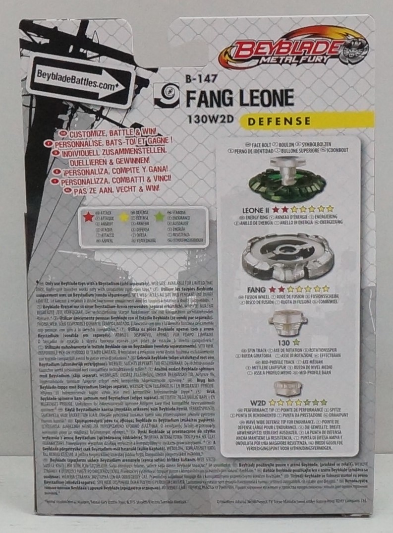 | Titolo: | Beyblade Metal Fury: B-147 Fang Leone Defense 130W2D. Hasbro 2012 |